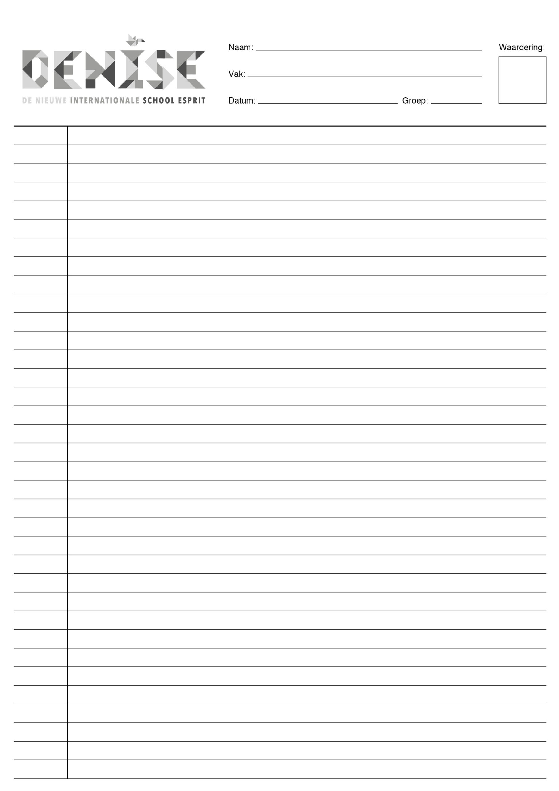 A4 proefwerkpapier,voorzien van schoollogo en volledig aanpasbaar: ideaal voor toetsen, examens, aantekeningen, etc.