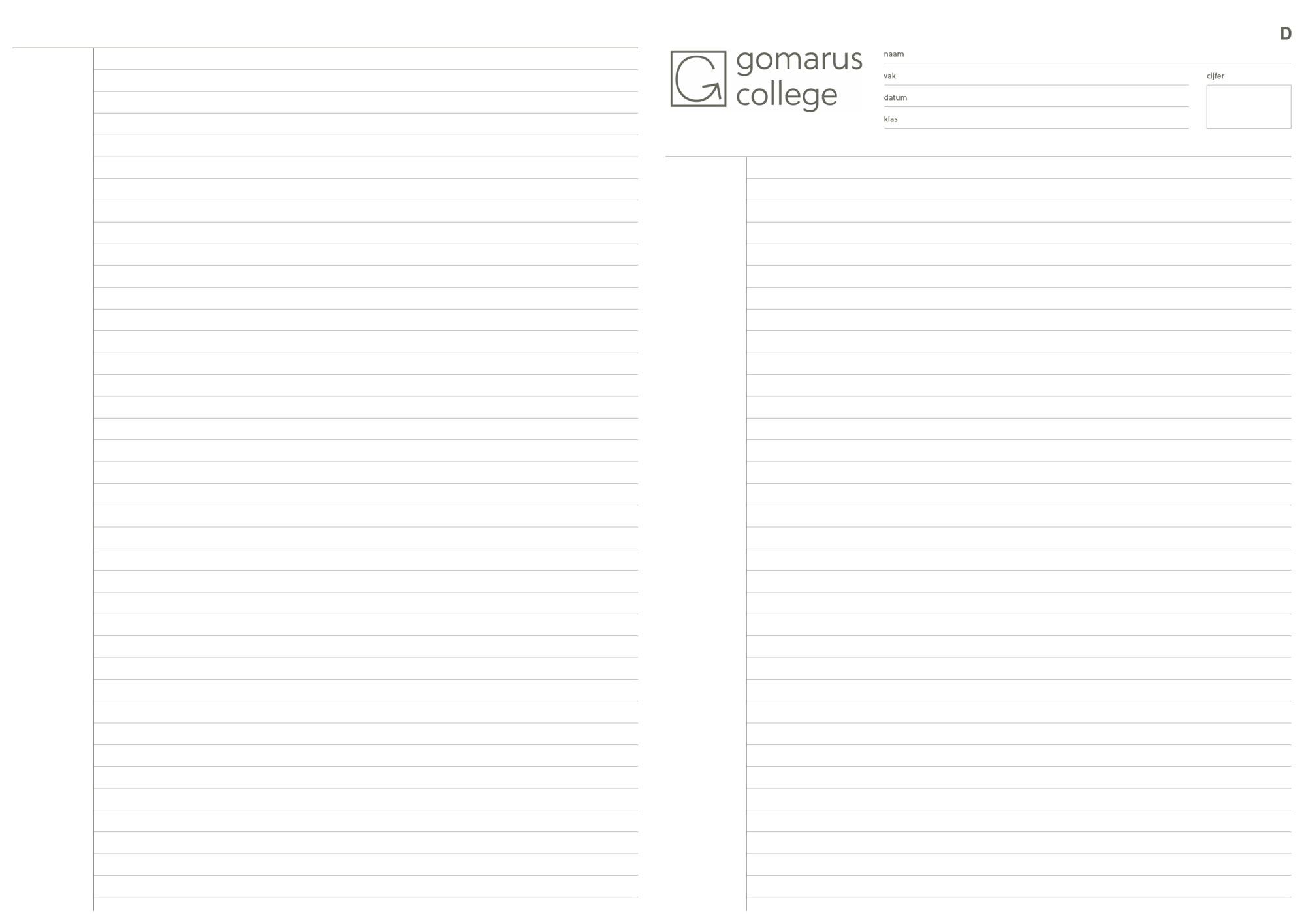 GSG – Gomarus College – Proefwerkpapier A3 – lijn