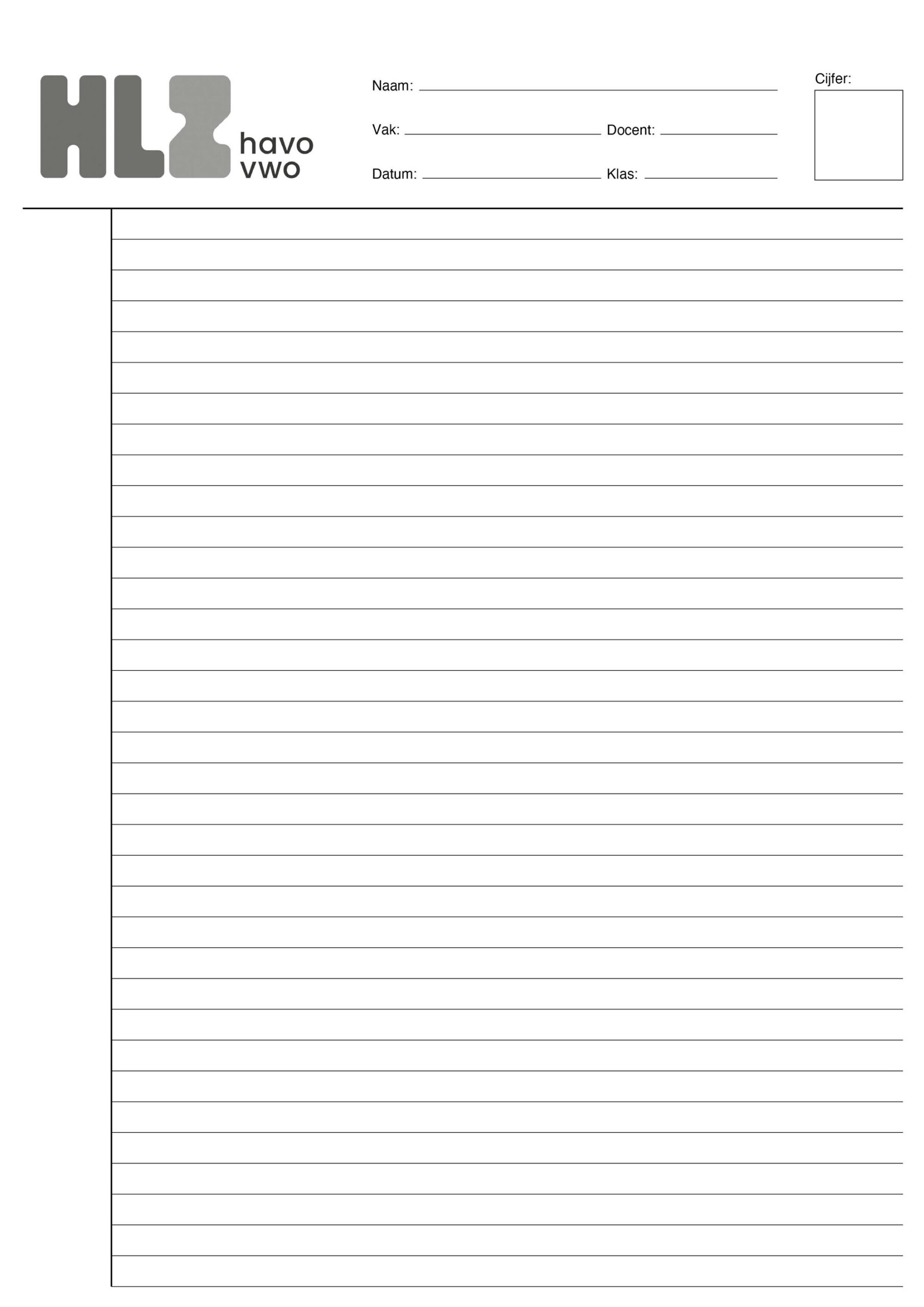 Hervormd Lyceum Zuid – Proefwerkpapier A4 – Lijn