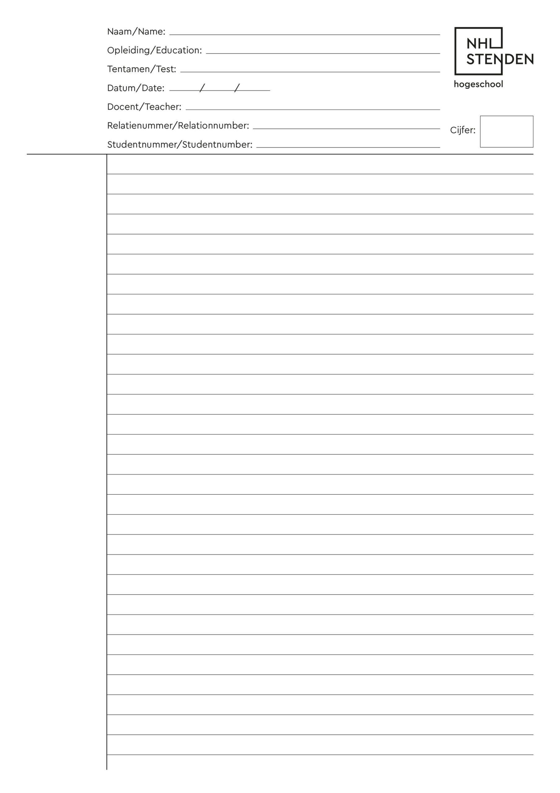 NHL Stenden – Toetspapier A4 – Lijn